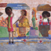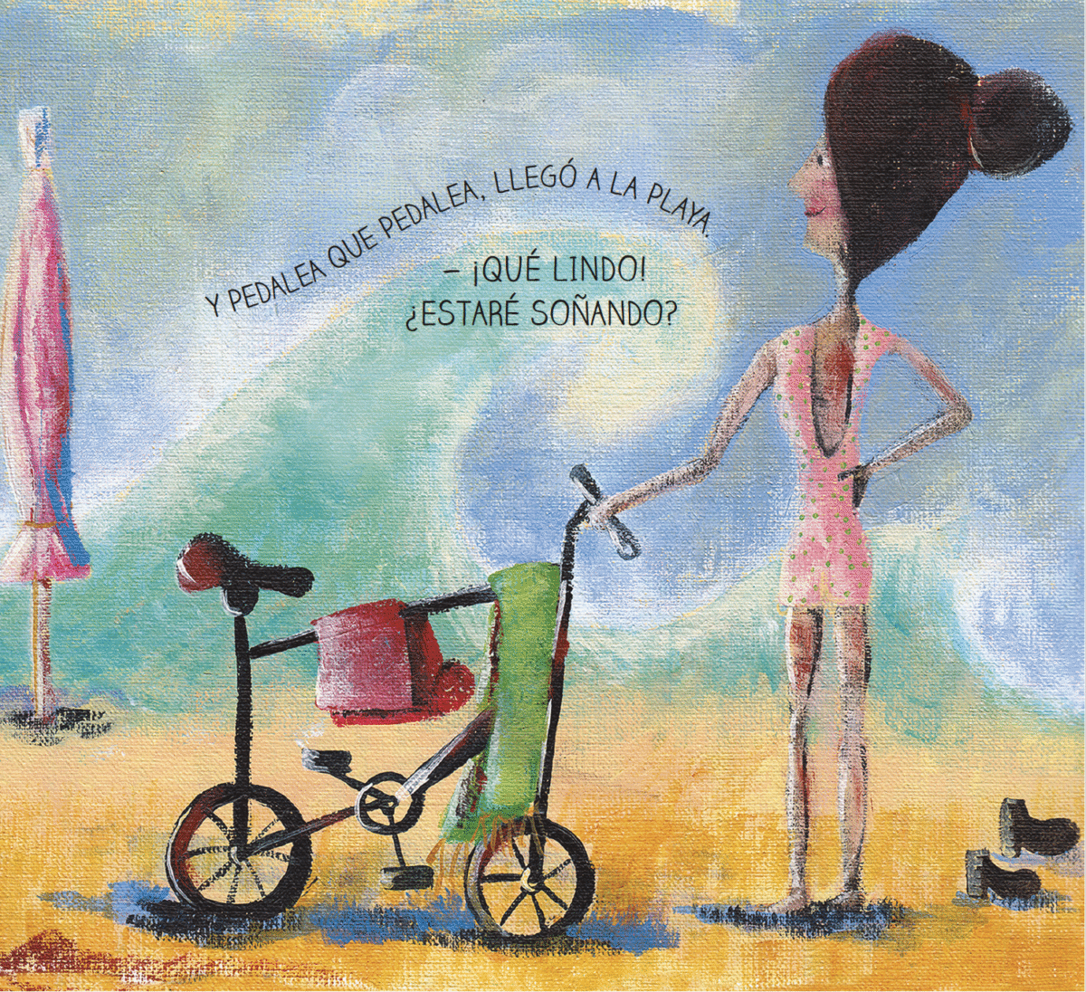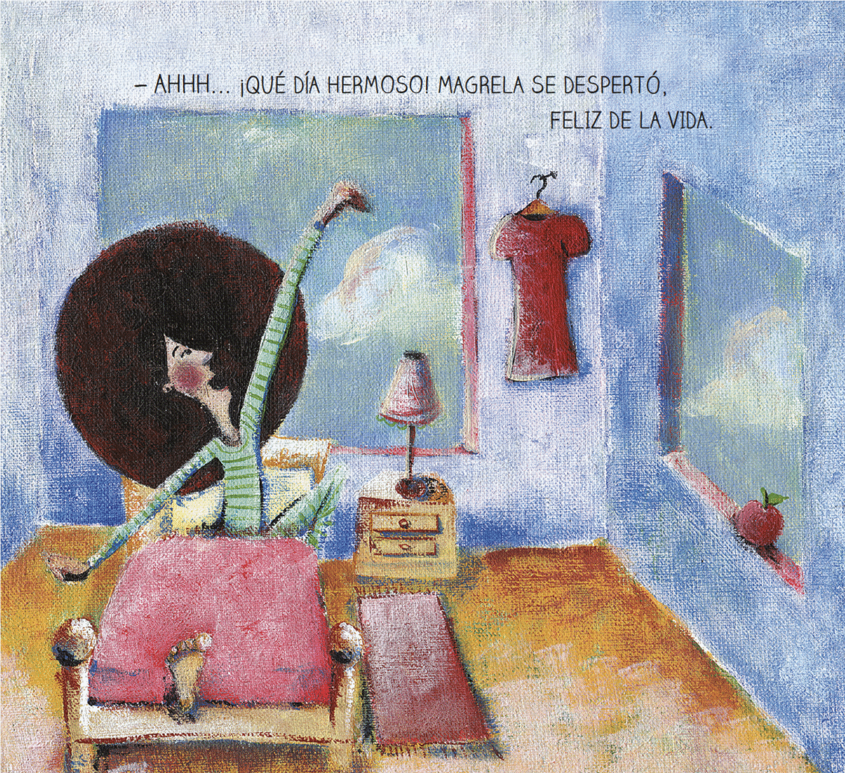 Magrela se levanta contenta: ¡el día está hermoso! Busca su bicicleta y sale de paseo. Pero su recorrido es algo extraño y ella no sabe por qué. Llega a una playa, a una feria, la gente la saluda, hay música por todas partes, aromas… “¿Estaré soñando?”, se pregunta Magrela.
